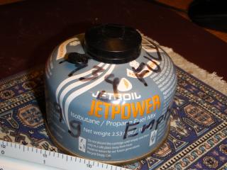 Tare Weights of Common Butane CanistersTare means empty. Subtract this number from what your canister now weighs to determine roughly how much gas remains in it. Weights given below were measured with plastic lid in place. Lids weigh approximately 2 grams. Always bring extra fuel, especially in the winter. Don't blame me if you run out of gas.